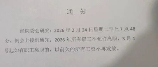 医院新规:2026年所有职工不允许离职,否则以前欠的工资不再发放!