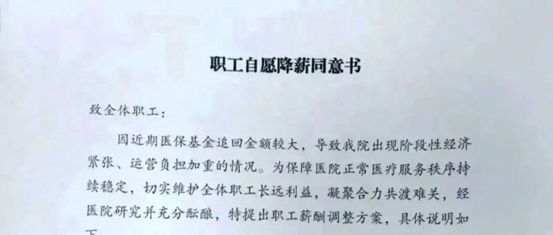 医院通知:全体职工签署“自愿降薪同意书”,不签就走人